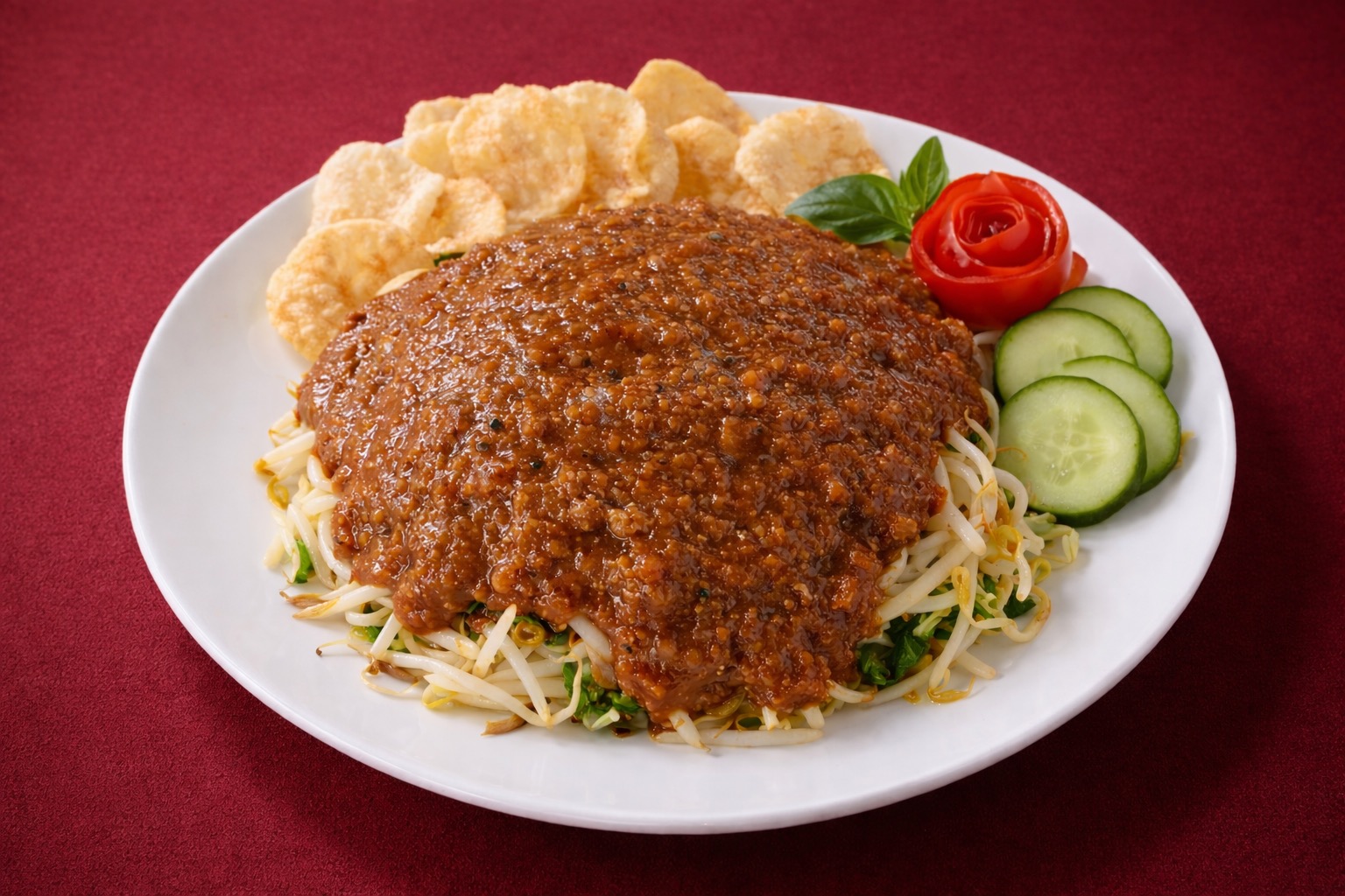 Diced chicken and seasonal vegetables and onion wok toasted with spicy peanuts sauce0