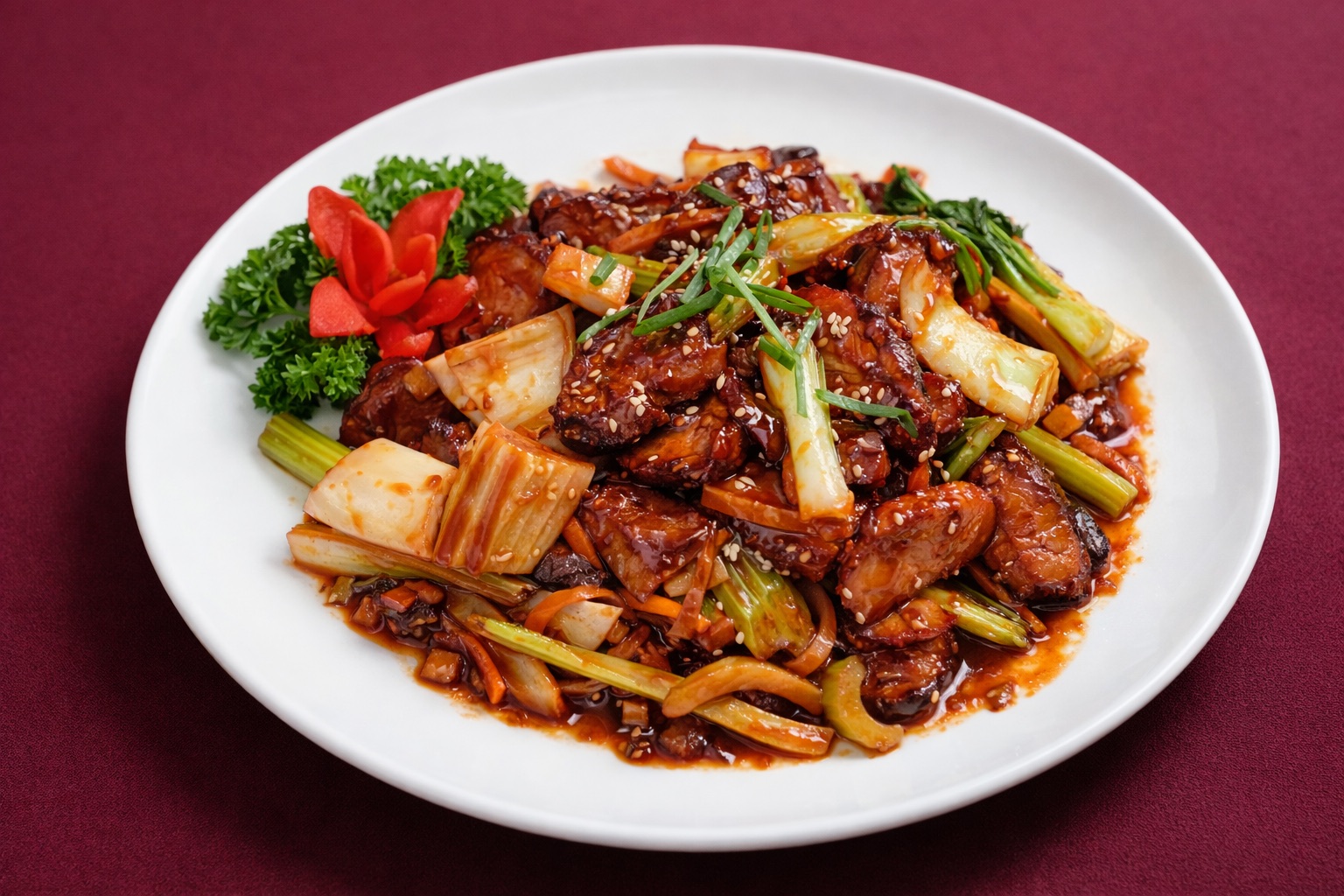 Stir-fried chicken in a savoury Mongolian-inspired sauce.0